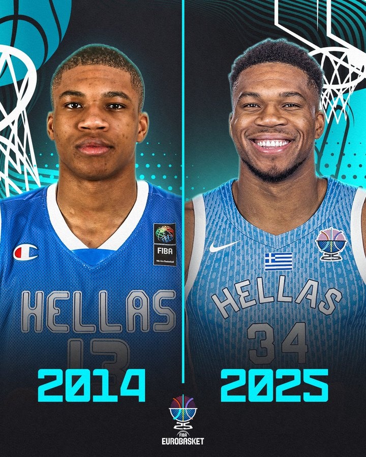 FIBA歐錦賽官方曬出了字母哥14年和25年代表國(guó)家隊(duì)征戰(zhàn)的圖,并寫道:“沒人能像他一樣。”