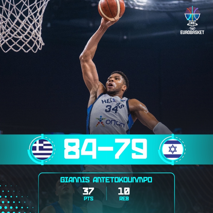 09月08日訊 2025年男籃歐錦賽1/8決賽,希臘以84-79淘汰以色列,拿到最后一個8強名額,將對陣立陶宛。