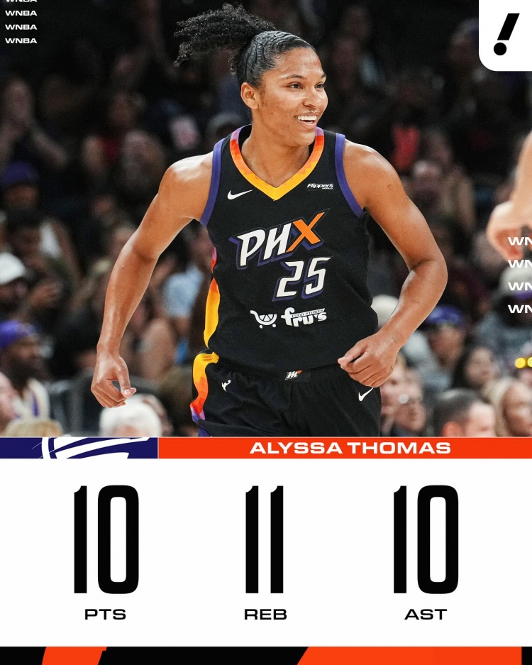 本場(chǎng)比賽,水星球星艾莉莎-托馬斯拿到10分11板10助攻的三雙數(shù)據(jù)。這樣一來(lái),她本賽季的三雙次數(shù)來(lái)到了8次,繼續(xù)刷新上個(gè)月她自己創(chuàng)造的7次的記錄。而原本的記錄是2023年她創(chuàng)造的單賽季6次。