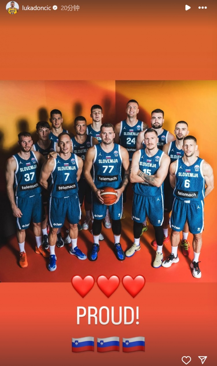 賽后,東契奇在INS曬出了全隊合照,并寫道:“??????驕傲?!?/p>