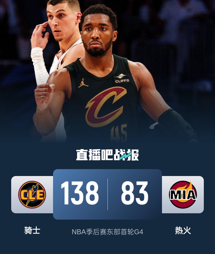 熱火(0-4):約維奇24分5板2助2斷、阿德巴約13分12板4助、拉松12分5板3助、維金斯12分5板1助、米切爾8分5助、哈克斯4分4板1助、希羅4分1板1助、韋爾2分7板、海史密斯2分4板、凱沙-約翰遜2分1板、鄧羅1板。