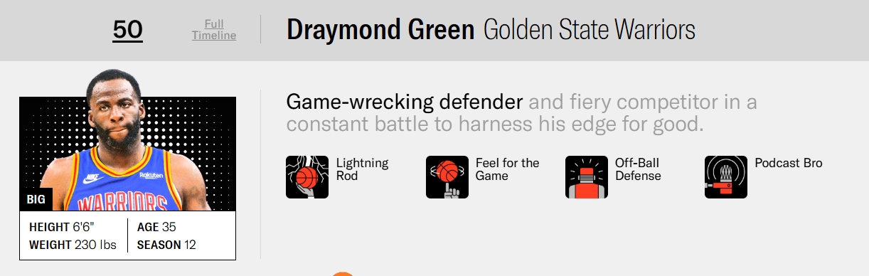 06月05日訊 著名美媒The Ringer今日依據(jù)球員一整個(gè)常規(guī)賽+季后賽的表現(xiàn),對(duì)24-25賽季進(jìn)行了百大球員的排名,其中21-50部分球員排名如下。