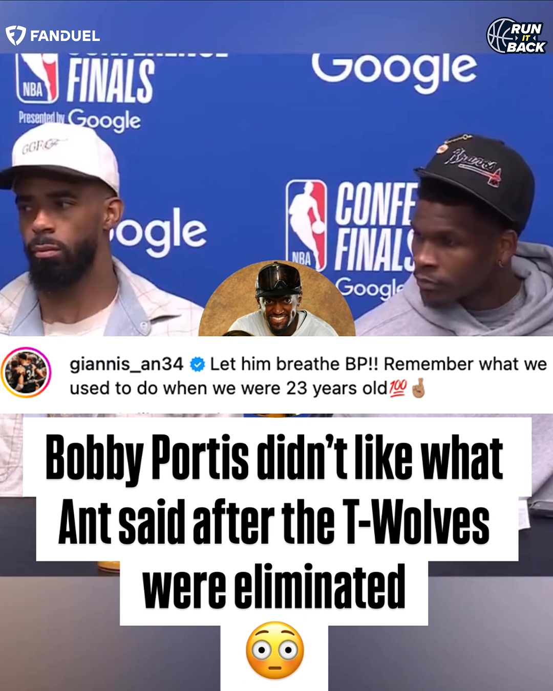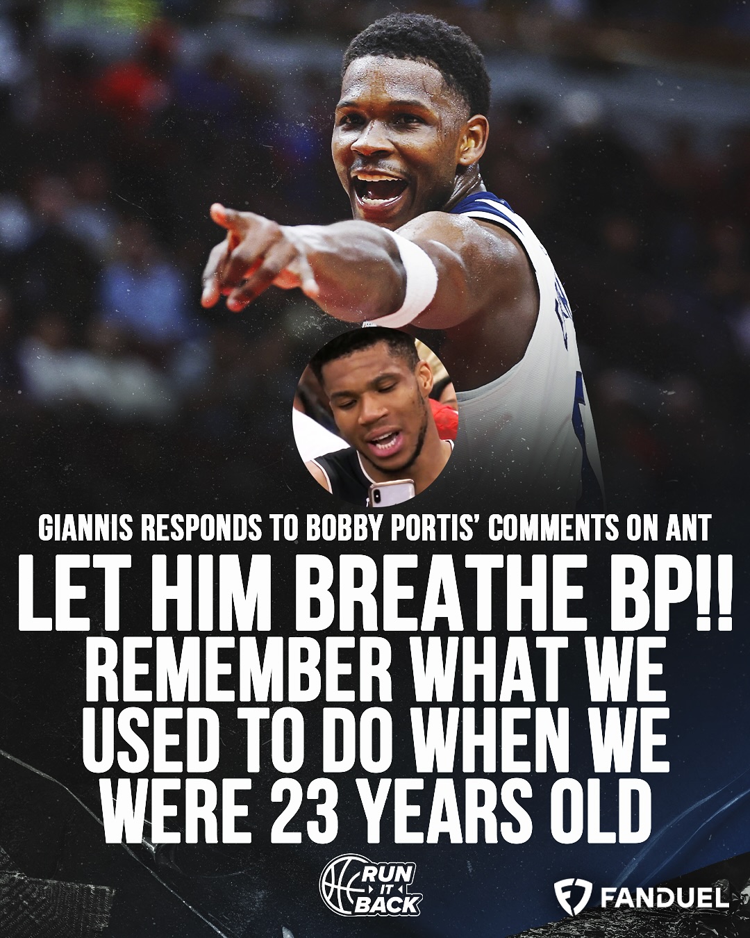 雄鹿當(dāng)家球星字母哥表示:“讓他喘息下吧,波比,還記得我們23歲時做過的事嗎???”