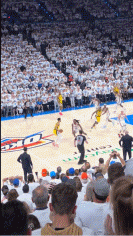 哈騰和卡魯索的換防輪轉(zhuǎn),逼哈利伯頓回場(chǎng),卡魯索一個(gè)三分。