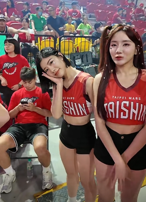視頻中,臺新戰(zhàn)神啦啦隊喊起了:“123,朱俊龍,你好帥。”