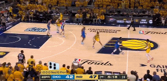 6月12日訊 NBA總決賽G3,步行者半場(chǎng)64-60領(lǐng)先雷霆。