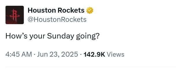 火箭官推發(fā)問道:“你的周末過得怎么樣?”