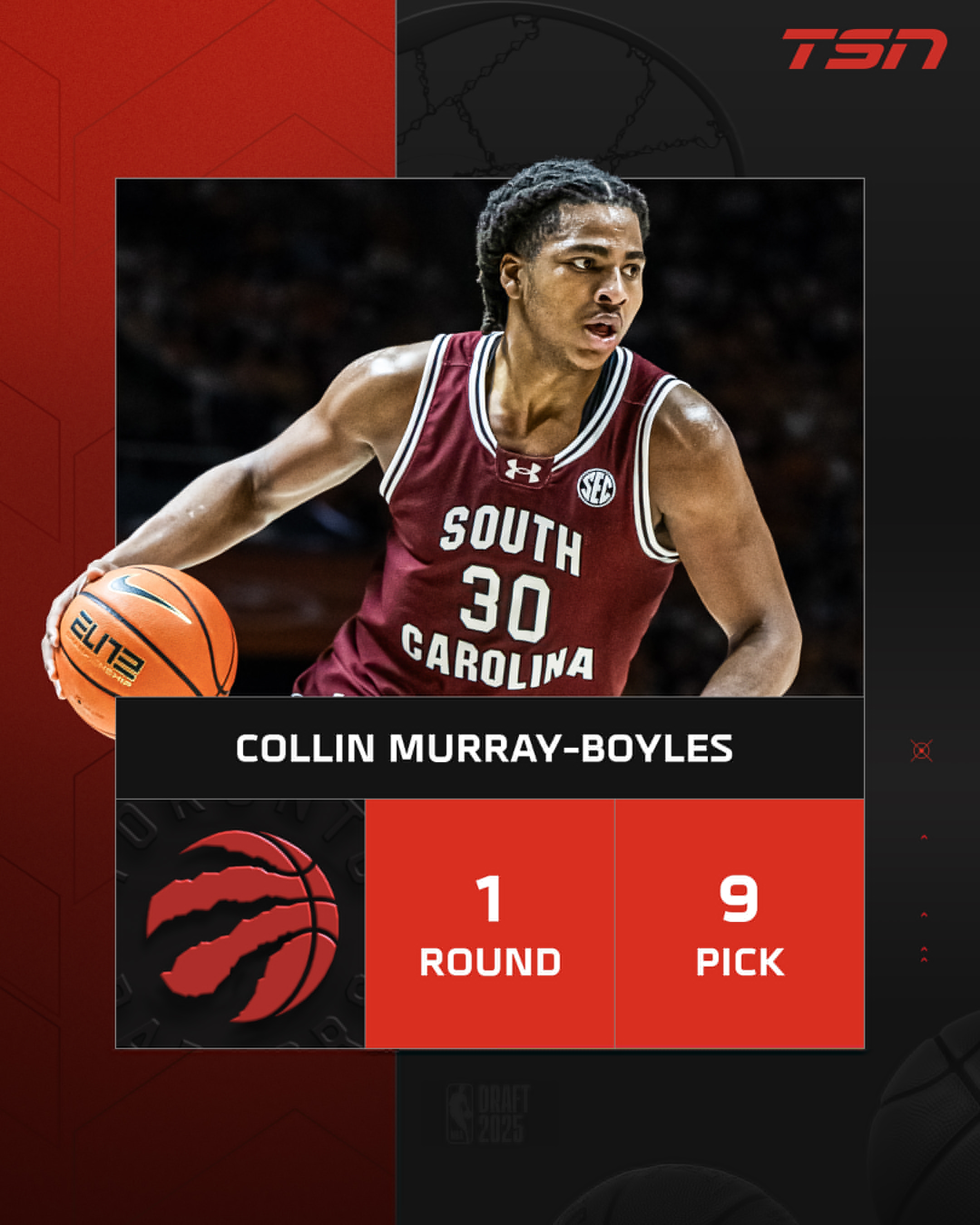 首輪第9順位,多倫多猛龍選擇了來自南卡羅來納大學(xué)科林-穆雷-博伊爾斯(Collin Murray-Boyles)