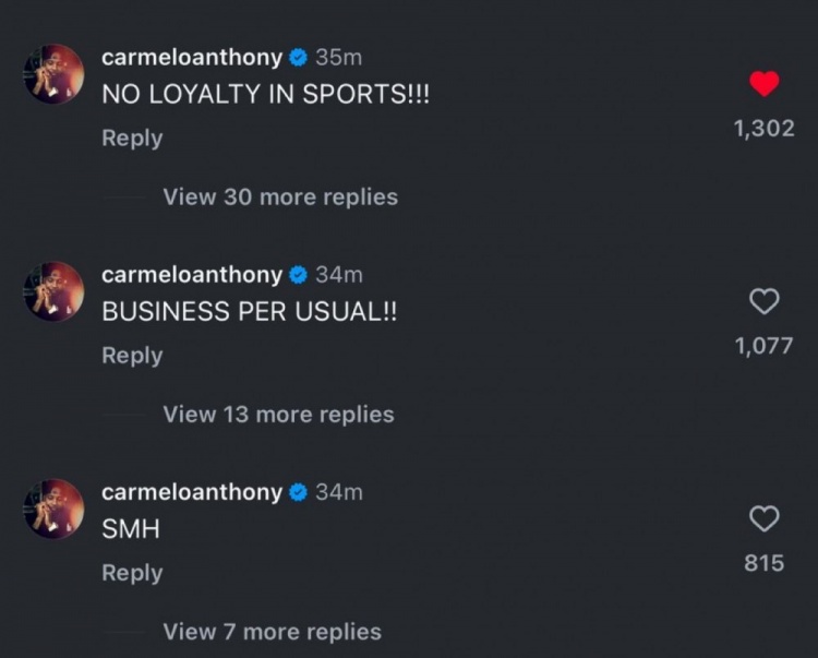 對此,在開拓者和利拉德當(dāng)過隊友的安東尼表達(dá)不滿,他連續(xù)評論道:“SMH(搖頭,表示不屑)”、“生意依舊如此”、“體育屆沒有忠誠可言”。