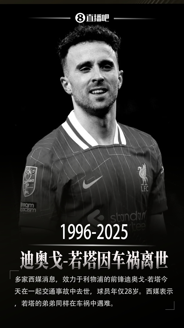 07月03日訊 利物浦前鋒若塔在一起交通事故中去世,年僅28歲。