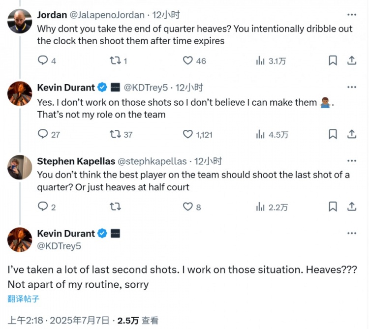 7月7日訊 近日,杜蘭特在推特上和網(wǎng)友互動(dòng)。