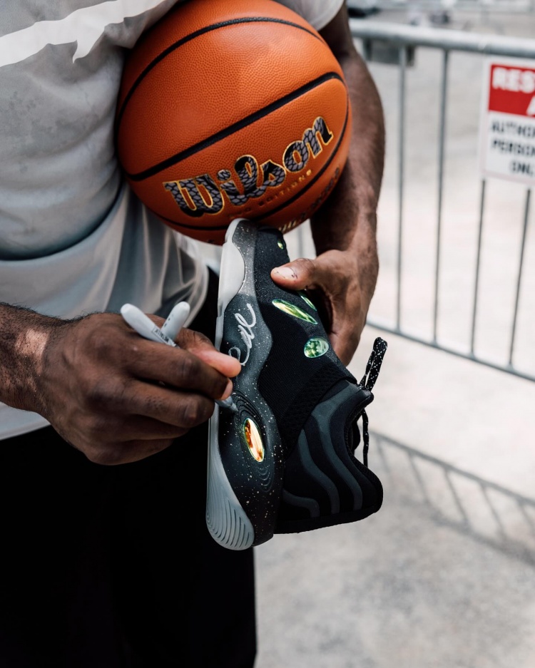 7月9日訊 杰倫-布朗在波士頓周邊的卡諾比湖公園舉辦個人球鞋品牌741performance的快閃活動。