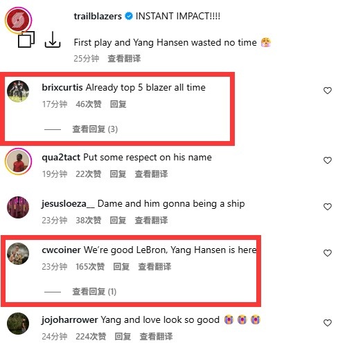 開拓者隊(duì)官方賬號(hào)發(fā)文:“立竿見影的影響?。?!首次登場,楊瀚森沒有浪費(fèi)任何時(shí)間?!?/p>