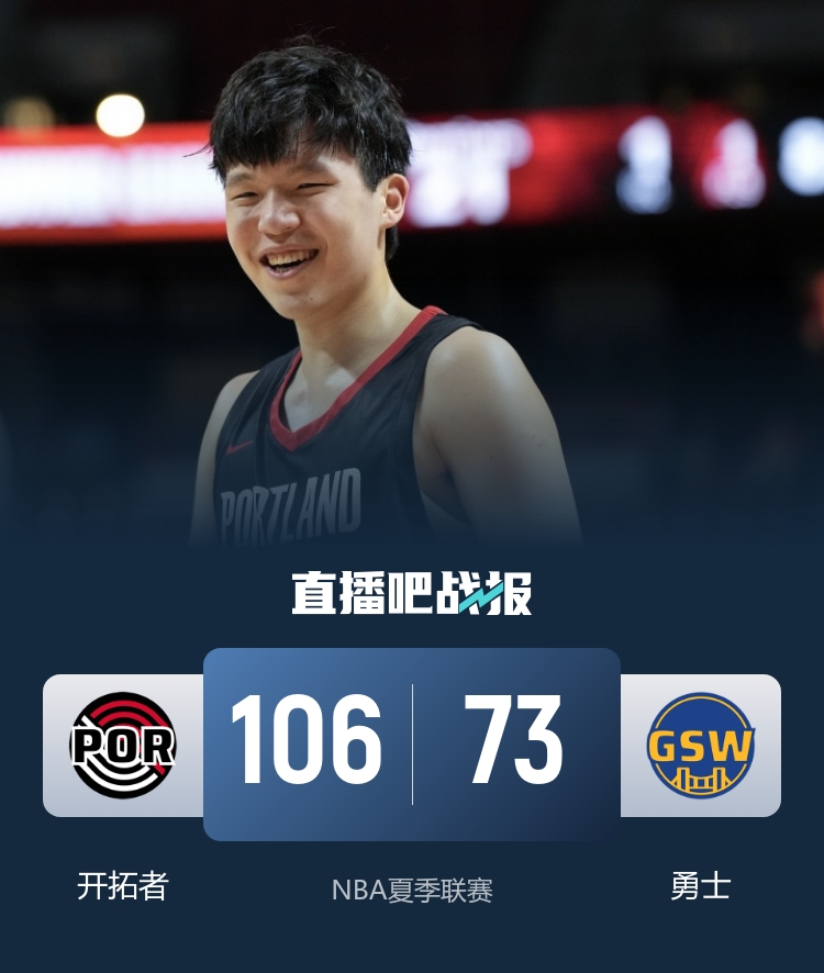 首節(jié)開打楊瀚森上來便送出妙傳助攻西索科拿分,開拓者整體更早進(jìn)入狀態(tài),他們開局不久便轟出23-4的攻勢直接取得19分的領(lǐng)先優(yōu)勢,而楊瀚森沒有進(jìn)攻出手但防守在線首節(jié)正負(fù)值高達(dá)+19;次節(jié)楊瀚森延續(xù)良好狀態(tài),節(jié)中拿球抹過大莫布里后輕松上籃得手并拿到個人夏聯(lián)首分,不過勇士整體狀態(tài)回暖不斷蠶食分差并追至13進(jìn)入下半場,上半場楊瀚森拿到8分2板2助2帽。休息歸來?xiàng)铄浅;钴S,先是搶斷助攻樂福輕松反擊得手,隨后自己又抓住對手的失誤反擊拿分,下一個回合又幫助樂福外線命中三分,在楊瀚森被換下前的2分30秒里,開拓者送上一波13-2的攻勢直接拉開20分以上的分差;這之后開拓者完全掌控局面,分差越拉越大擴(kuò)大至30分,楊瀚森也在開局短暫上場后下場休息。最終,開拓者106-73大勝勇士拿下比賽。