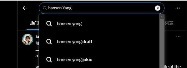 值得一提的是,在某知名社交網(wǎng)站上搜索hansen yang會(huì)顯示hansen yang jokic(楊瀚森約基奇)的下拉詞條。