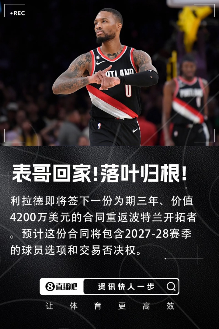 ??利拉德3年4200萬美元重回波特蘭!ESPN評(píng)級(jí):開拓者A-