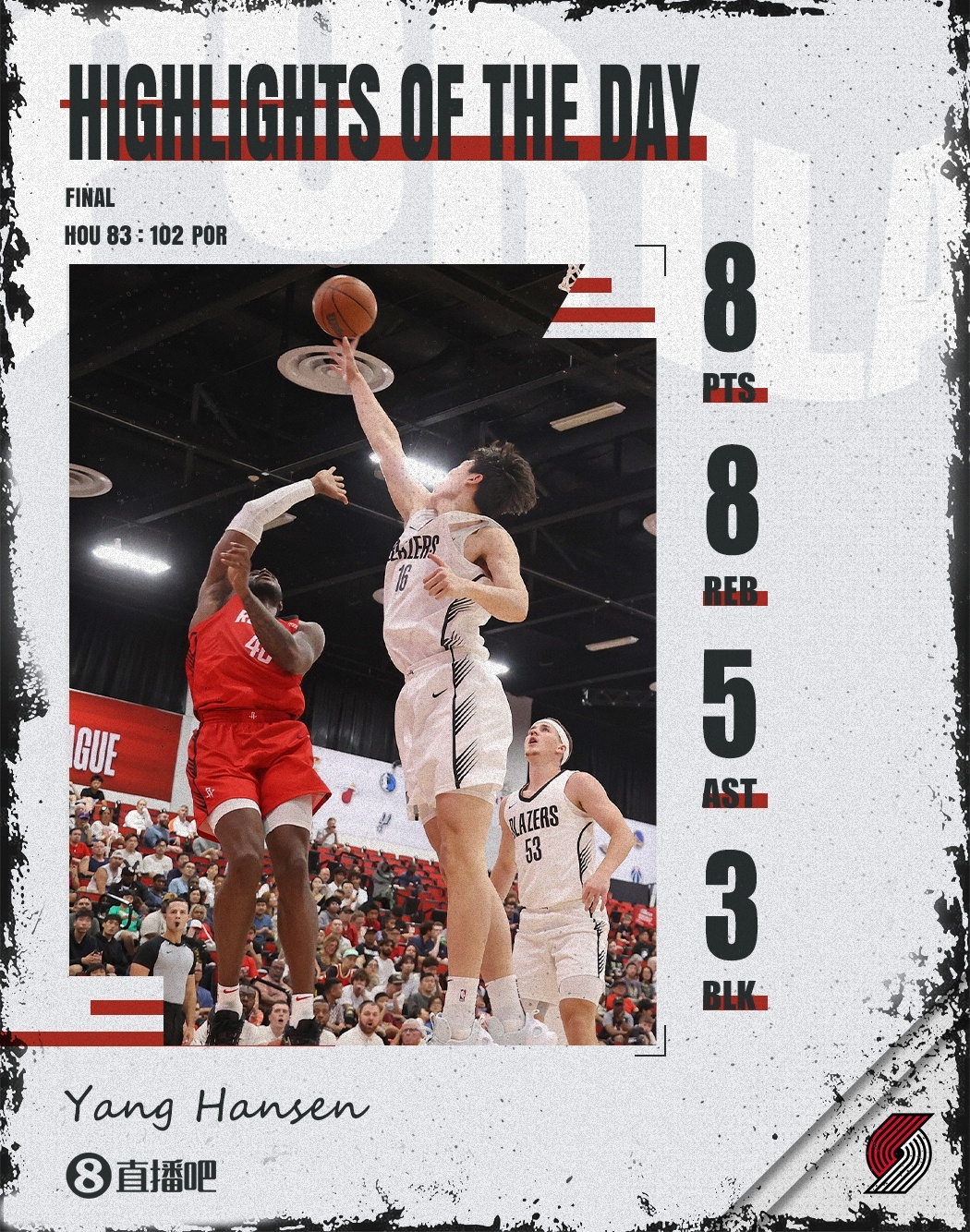 07月18日訊 NBA夏季聯(lián)賽,開(kāi)拓者102-83擊敗火箭。