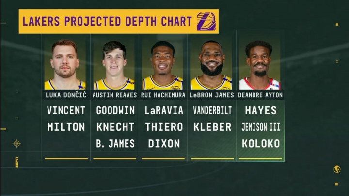 比賽期間轉(zhuǎn)播方曬出湖人目前的陣容深度: