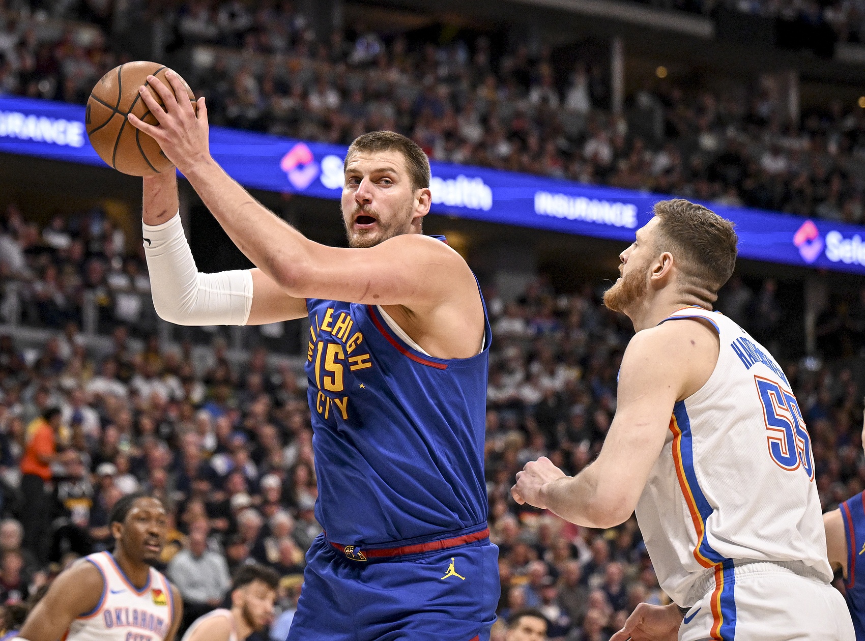 哈爾滕施泰因表示:“約基奇很難防守,他很擅長傳球,如果單純的一對一,那么就是恩比德,健康的恩比德。因為你沒法對恩比德打出對抗,他會制造犯規(guī),他很強壯,所以就是約基奇和恩比德這兩個人。”