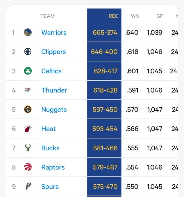 快船2013年以來總計646勝400負(fù),勝率高達(dá)61.8%。而勇士隊是665勝374負(fù),是勝率最高的球隊,為64%。