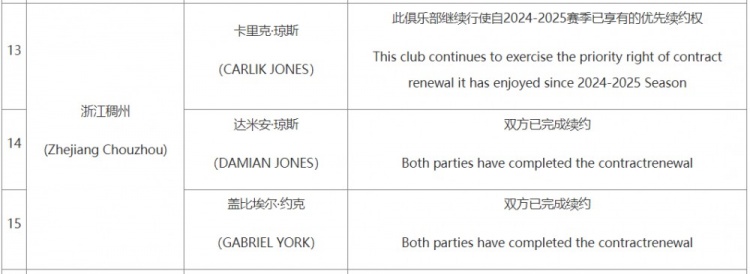 其中,浙江男籃仍然擁有卡里克-瓊斯優(yōu)先續(xù)約權(quán),此外球隊(duì)已經(jīng)和達(dá)米安-瓊斯、約克完成續(xù)約。