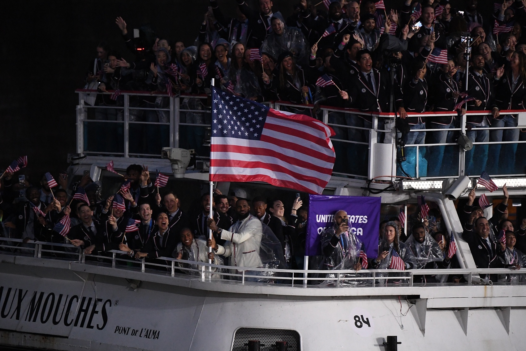 詹姆斯和美國女子網(wǎng)球選手可可-高芙分別被美國奧運代表團同行投票選為巴黎奧運會開幕式男女旗手。開幕式當天巴黎突降大雨,詹姆斯和高芙冒雨完成了旗手職責(zé)。