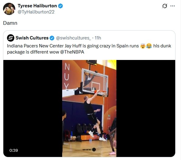 美媒Swish Cultures曬出赫夫在西班牙的一個(gè)球局中大殺四方的視頻,哈利伯頓言簡意賅地點(diǎn)評新隊(duì)友:“我嘞個(gè)豆?!?/p>