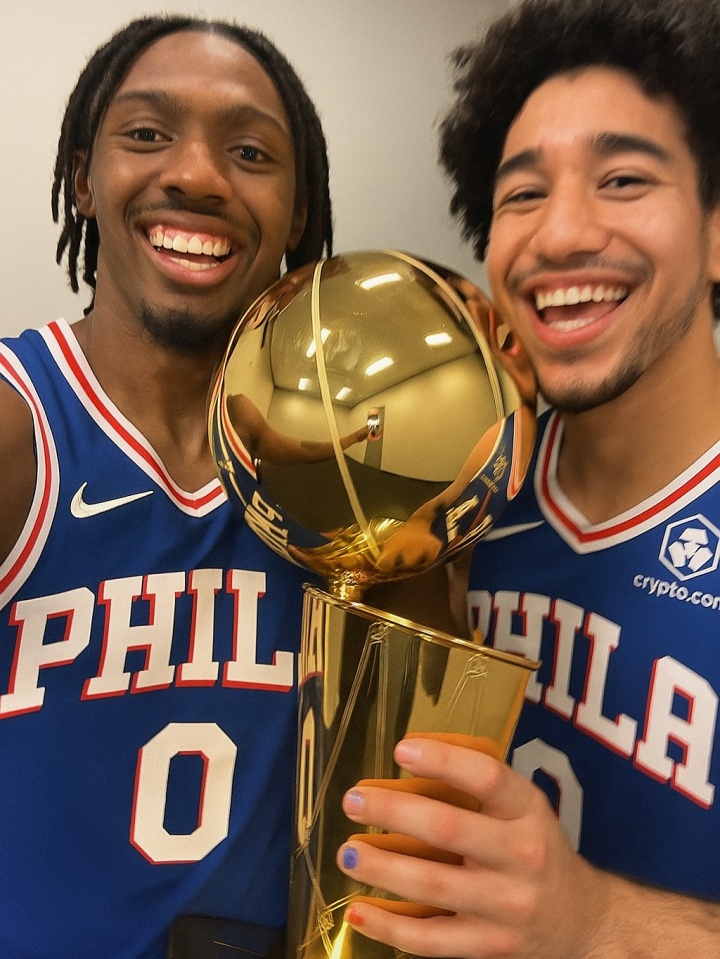 07月28日訊 今日,76人后衛(wèi)賈里德-麥凱恩在個人社交媒體上放出了一張他與隊友泰瑞斯-馬克西的AI奪冠合照。