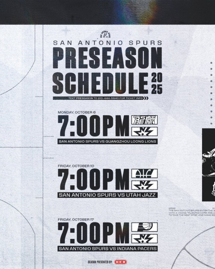 7月28日訊 馬刺更新社媒公布了10月份的季前賽賽程,并配文道:十月還沒到嗎????這是我們2025-26賽季季前賽主場賽程預(yù)告。
