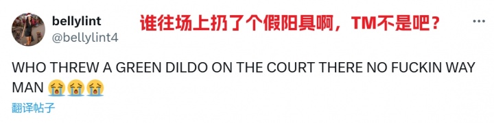 比賽暫停期間,一位球迷往場(chǎng)內(nèi)扔了一個(gè)綠色的假陽(yáng)具,現(xiàn)場(chǎng)鏡頭甚至給了一個(gè)簡(jiǎn)短的特寫(xiě),然后被迅速切走。