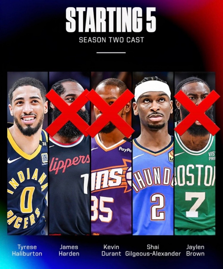 而《Starting 5》第2季陣容在賽季開始前確認(rèn)為凱文-杜蘭特、詹姆斯-哈登、杰倫-布朗、亞歷山大和哈利伯頓。