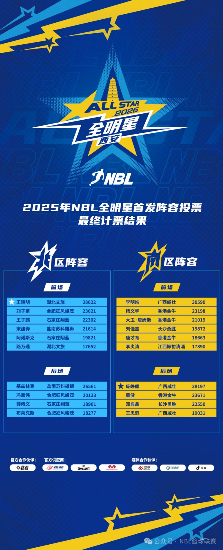 2025年NBL全明星投票全部結束,正賽首發(fā)陣容今日出爐。