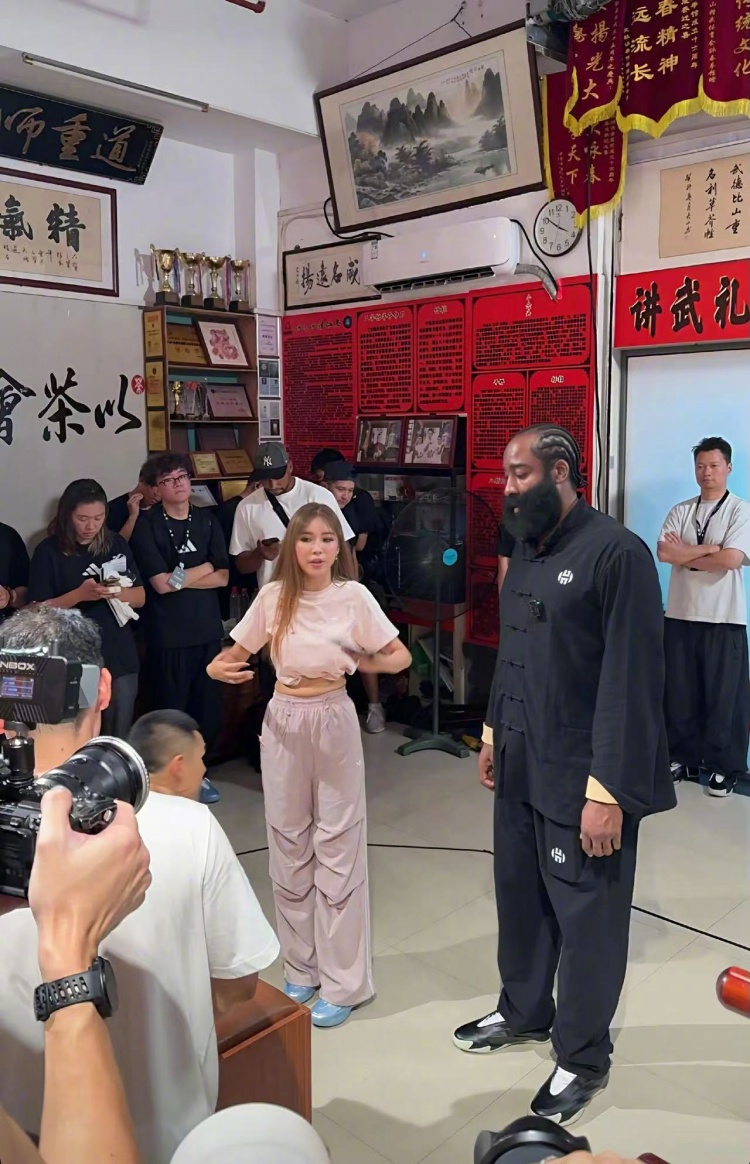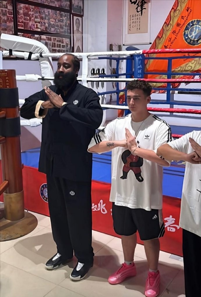 8月2日訊 快船球星哈登開啟中國行,首站在廣州參加活動,哈登身穿唐裝打詠春。