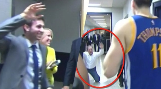 2016西部決賽G6,勇士后衛(wèi)克萊-湯普森,31中14,其中三分18中11,外加罰球2中2,砍下41分4板1斷1帽。他的表現(xiàn)讓勇士老板拉科布在球員通道欽佩的單膝下跪膜拜。