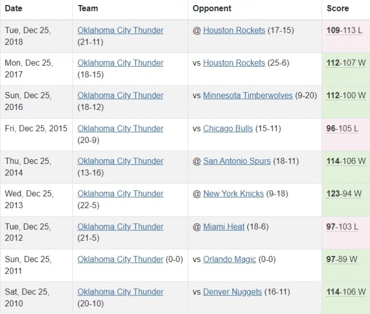 在此前10-18賽季,雷霆連續(xù)9年打圣誕大戰(zhàn)。