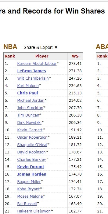 “詹姆斯-哈登在休斯敦火箭的統(tǒng)計數(shù)據(jù)并非‘空洞無物’,‘哈登從來都不是贏家’的說法對我來說毫無道理。無論你怎么看待他在季后賽中的表現(xiàn),哈登在常規(guī)賽勝利貢獻值上排名歷史第16位,達到174.7。數(shù)據(jù)不會說謊?!盨leeperRockets寫道。