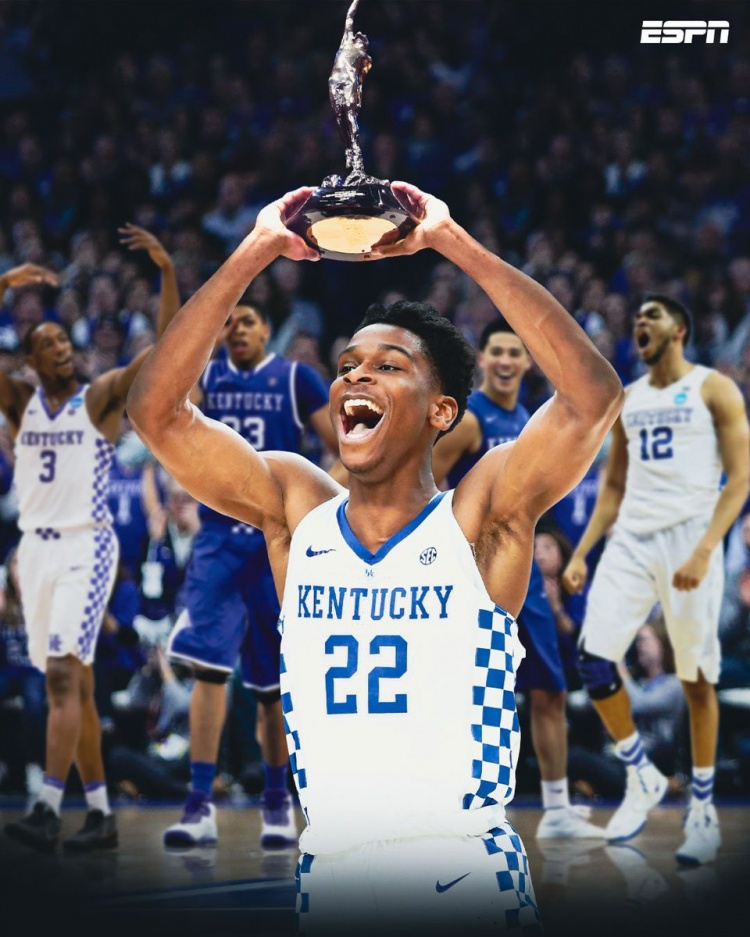 這樣一來,亞歷山大成為肯塔基大學(xué)校史第一個(gè)拿下MVP的球員!