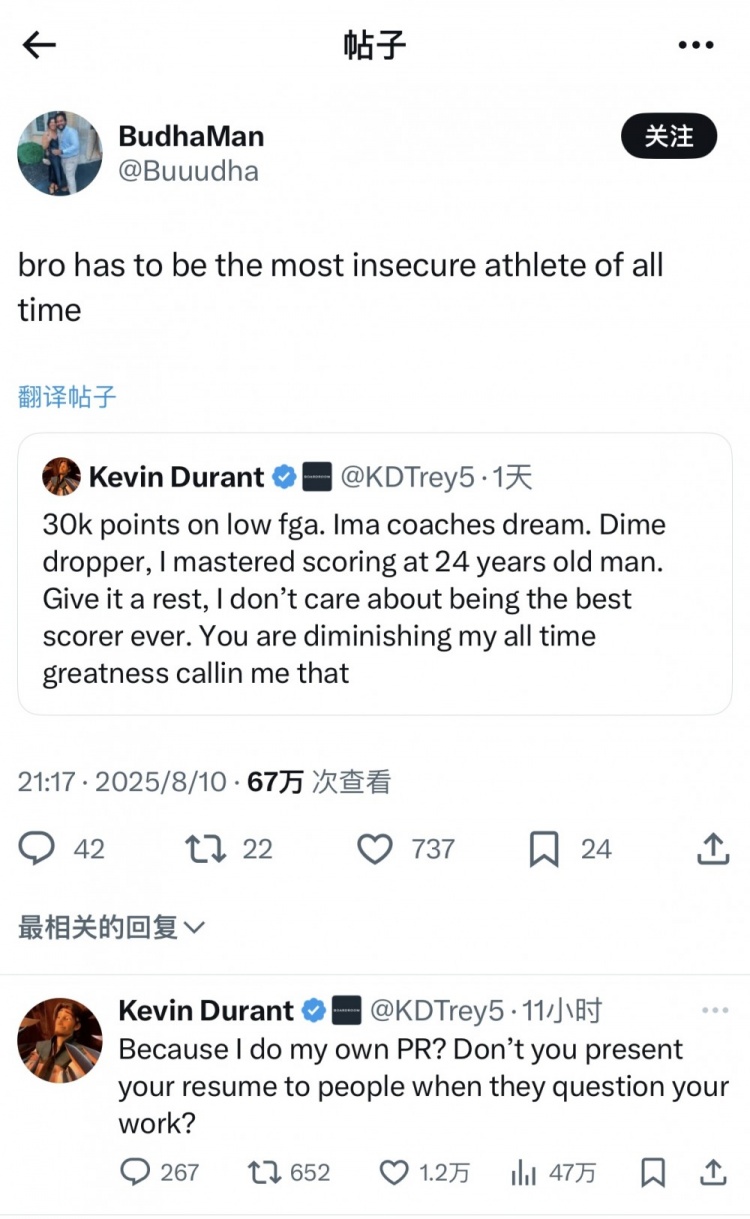 8月11日訊 近日,火箭前鋒杜蘭特連續(xù)在社媒X上與球迷對(duì)線。