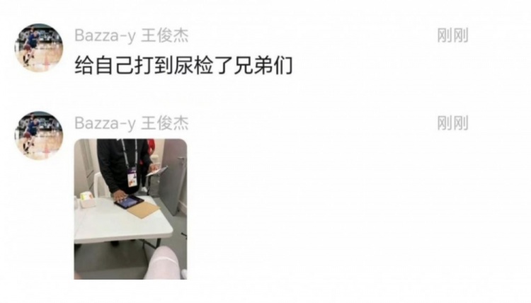 幫助中國男籃時隔十年重回亞洲杯四強之后,王俊杰在社交網(wǎng)絡(luò)上更新了狀態(tài),發(fā)布了一張進行尿檢的照片,并且配上了一句話,“給自己打到尿檢了兄弟們”。