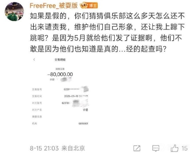 轉(zhuǎn)徐杰8萬元!爆料女曬3月轉(zhuǎn)賬截圖被和諧 熱心網(wǎng)友保存幫曬