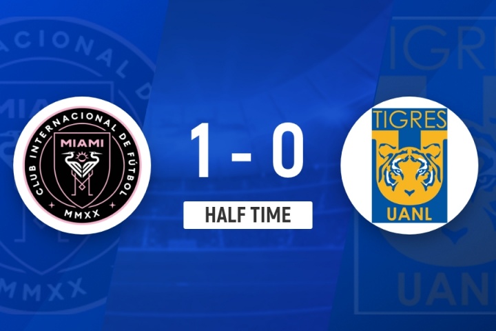 上半場補時4分鐘,邁阿密國際1-0老虎大學。