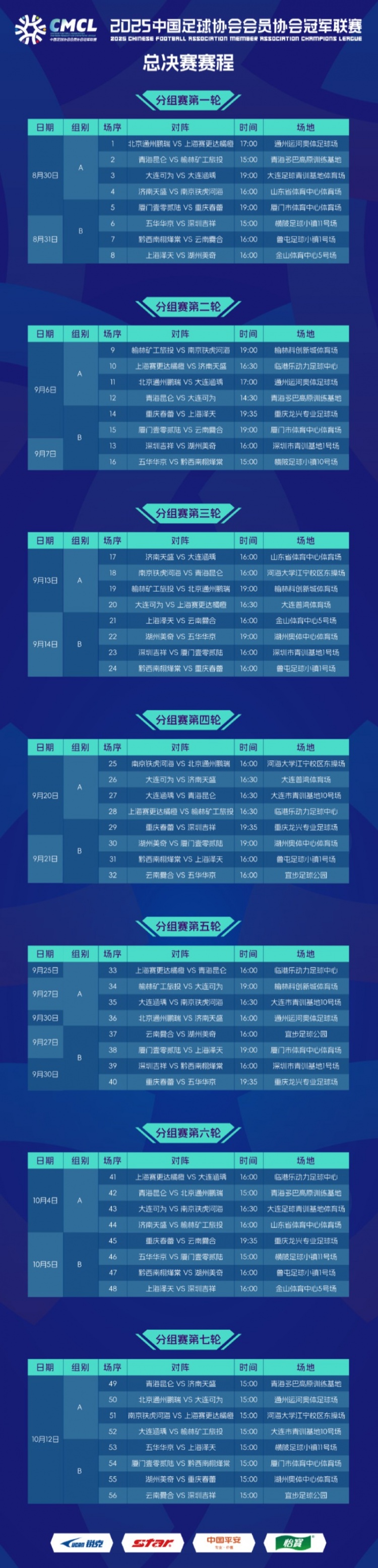 8月21日訊 中冠官方公布總決賽分區(qū)循環(huán)賽賽程,比賽將于8月30日-10月12日進行。