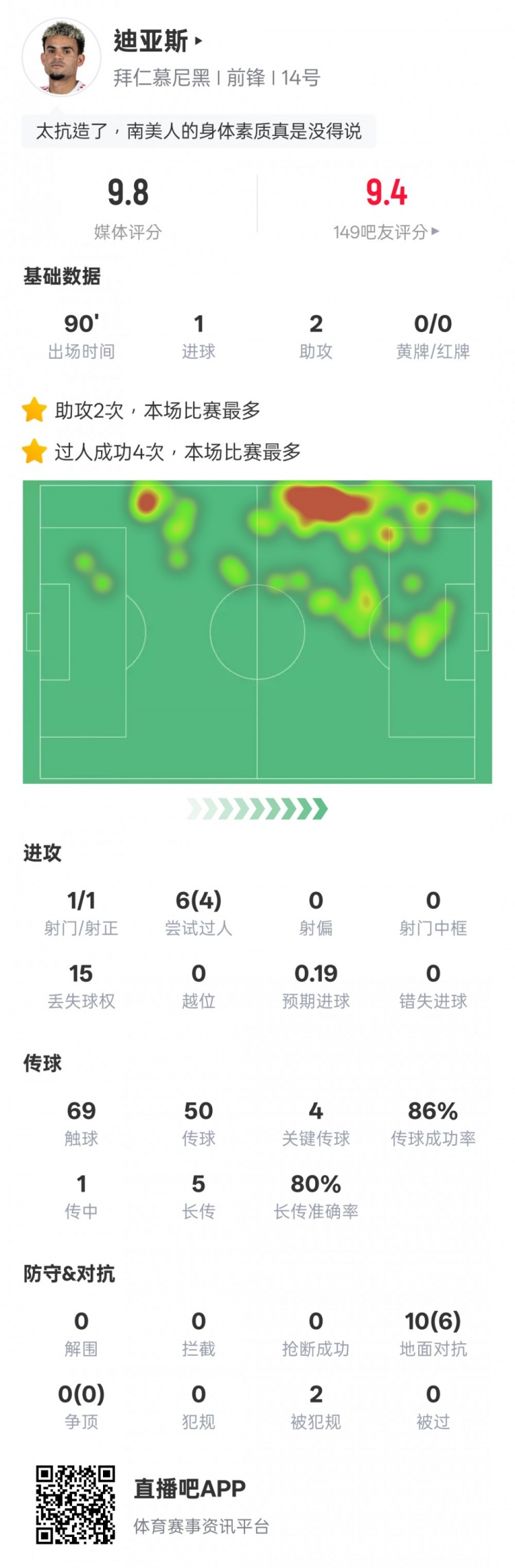 8月23日訊 2025-26賽季德甲首輪,拜仁主場(chǎng)6-0大勝萊比錫。路易斯-迪亞斯首發(fā)出戰(zhàn),貢獻(xiàn)1射2傳,另外他還有4次過人成功全場(chǎng)最多,并送出4次關(guān)鍵傳球,評(píng)分9.8。