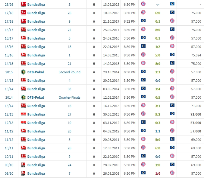 在與漢堡的歷史交手記錄中,拜仁已經(jīng)16年未嘗敗績,期間拜仁16勝3平,還多次打出過9-2、8-0等讓球迷津津樂道的大比分。