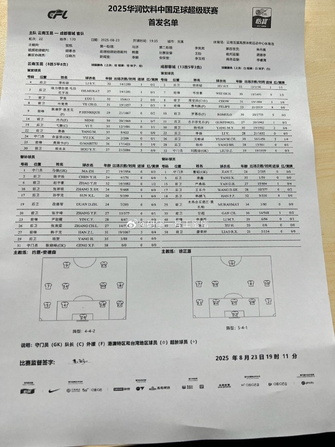 8月23日訊 中超第22輪,成都蓉城客場對陣云南玉昆。