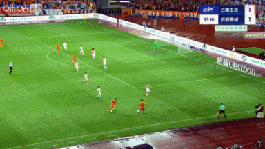 比賽第36分鐘,玉昆右路傳中,禁區(qū)弧頂羅競背對球門,停球后直接選擇倒鉤!足球擊中橫梁后被劉殿座沒收。