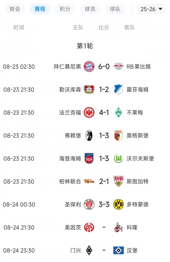 德甲首輪戰(zhàn)罷多場,拜仁6-0大勝勁旅萊比錫,幾乎鎖定首輪榜首。反觀其他強(qiáng)隊(duì),翻車一大堆。