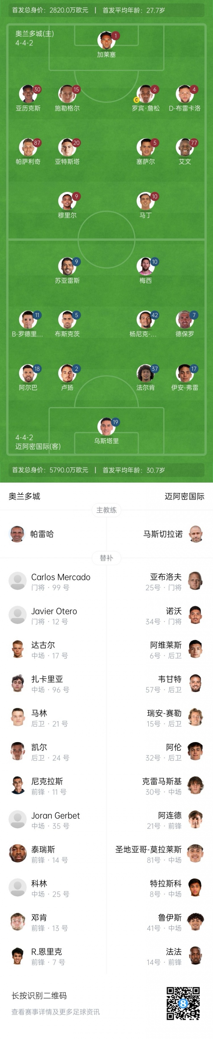 奧蘭多城首發(fā):1-加來(lái)塞、30-亞歷克斯、15-施勒格爾、6-羅賓-詹松、4-D-布雷卡洛、20-亞特斯塔、5-塞薩爾、87-帕薩利奇、77-艾文、9-穆里爾、10-馬丁