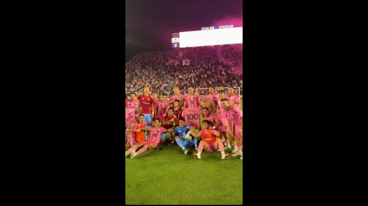 現年37歲的布斯克茨2023年加盟邁阿密國際,這位西班牙中場各項賽事已經為球隊出戰(zhàn)100場比賽,在淘汰奧蘭多城的賽后,布斯克茨獲贈一件紀念球衣,全隊合影留念慶祝這一時刻。
