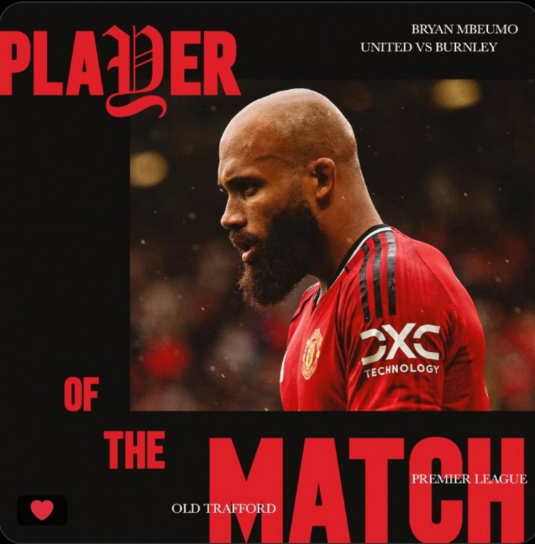 本場比賽新援姆伯莫打進(jìn)個人曼聯(lián)生涯英超首球,賽后他也當(dāng)選曼聯(lián)官方評選出的本場隊內(nèi)最佳球員。